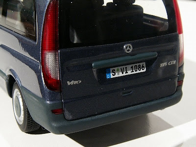 It is available as a standard panel van, or with additional passenger accommodation substituted for part or all of the load area. The second generation Mercedes-Benz Vito is more streamlined than its predecessor, but more importantly is powered by a new range of engines and a rear-wheel drive (RWD) drivetrain. The model is manufactured by Minichamps.